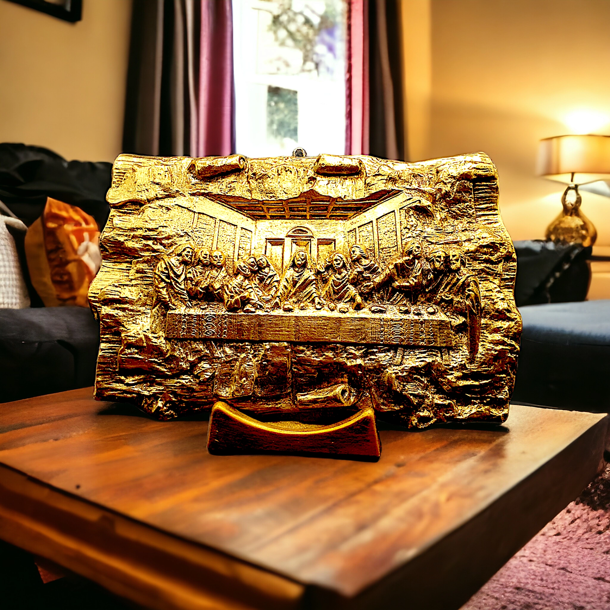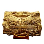 Admirați „Cina cea de Taină”, o reprezentare aurie și emoționantă ce îmbină meșteșugul bucovinean cu semnificația profundă a momentului sacru. Această piesă excepțională, gravată cu detaliu și respect, devine un simbol al comuniunii și al iubirii divine în spațiul dumneavoastră.